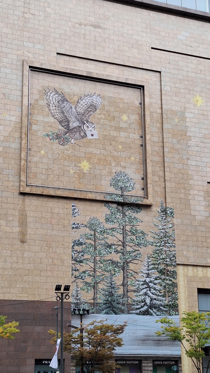 나무가 진짜인지 벽화인지 햇갈려서 한번 확인해 봐야겠어요.